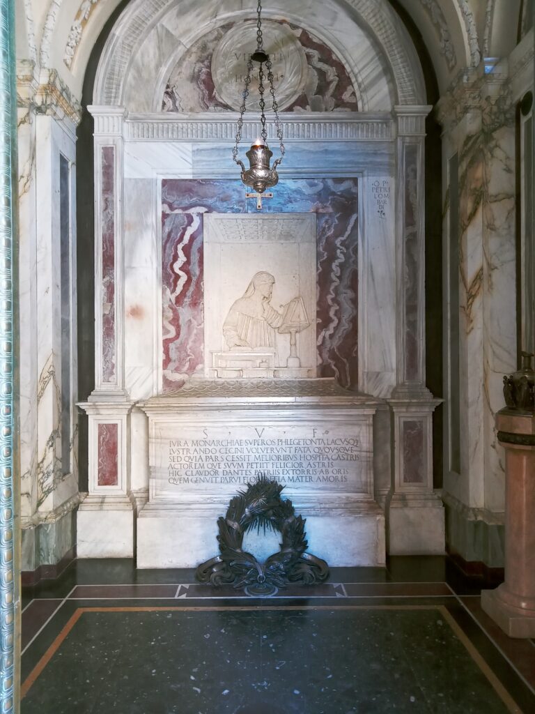Obwohl Florenz mehrfach versuchte, die Gebeine Dantes zurückzuführen, blieb sein Grab in Ravenna unangetastet. Als Geste der späten Anerkennung stiftet die Stadt Florenz jedes Jahr Öl für die ewige Lampe, die vor dem Grab brennt. (KR)